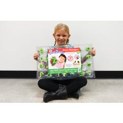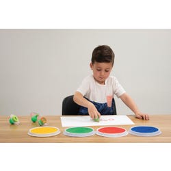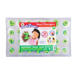 Center Enterprises Jumbo Grip Lowercase Alphabet Stamp Set is ideal for children in the age group of 3 years or above and the set includes 26 letters, 2 punctuation symbols in a reusable plastic case. The 3 inch diameter foam stamps feature a comfort-grip handle with clear tops and directional arrows for easy placement.Features