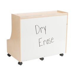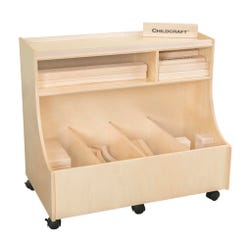 The Childcraft® Block Storage Unit on wheels provides an efficient way to store and organize building blocks while fostering spatial awareness, cognitive development, and creativity. Featuring four lower and two upper compartments, the block holder offers ample storage for various block sizes. The back panel doubles as a dry-erase board, adding an additional interactive element. This block cabinet is also available with 100 wooden blocks and blue block-shaped stickers for labeling to make it easy for children to match blocks to designated spaces. Use the cabinet for blocks or other classroom supplies. Comes fully assembled and measures 35-3/4 W x 21-1/2 D x 31 H inches.Features