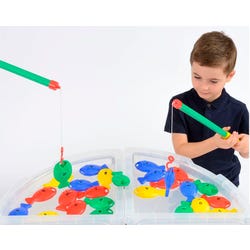 Educational Advantage Small Fishing A-Z is a fun alphabet fishing game that is suitable for indoor and outdoor use. These compact fish float in water and are perfect for table top or sand and water use. Up to 2 players hook the fish with their fishing rods while improving motor skills and hand-eye coordination and learning the alphabet. Fish are approximately 4 inches and fishing rods are 20 inches. Ages 2 and up.Features