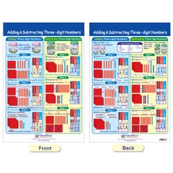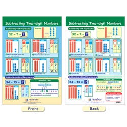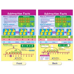 Graphically stimulating, well-organized and highly educational, the Addition & Subtraction Number Sense Bulletin Board Chart Set provides an excellent reference resource for your classroom bulletin board or wall, or as a hands-on activity for instruction, review and reinforcement for students in your Math or STEM programs. The Chart Set includes a collection of 6 individual 12” x 18” laminated charts, each covering a separate, curriculum topic. Uniquely designed, Side 1 features a graphic overview of the topic while Side 2 provides “write-on/wipe-off” activity exercises for review and reinforcement. Graphic images and hands-on activities combine to provide comprehensive coverage of essential student information. Perfect for classroom, library or study room reference or for use in learning centers/small group activities; independent study and remediation; or as a teacher resource for introduction and review of key concepts. Topics covered: Addition Facts; Subtraction Facts; Adding Two-Digit Number; Subtracting Two-Digit Numbers; Adding & Subtracting Three-Digit Numbers; and Adding & Subtracting Number Sense.Features