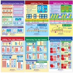 NewPath Learning Addition & Subtraction Number Sense Bulletin Board Charts, Grades 1 to 3, Set of 6