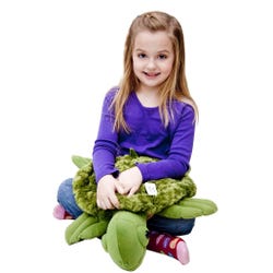 Weighted Turtle is a cuddly companion that helps focus and provides a soothing effect. Proprioceptive feedback is effective for children with autism, sensory integration disorders, and many other neurological challenges. The plush fabric provides a soft and sensory deep pressure experience. Use with supervision for 20 minutes at a time or as recommended. Filled with plastic and steel pellets to provide even weight distribution. Surface wash only. Air dry. Measures 16 L x 10 W inches. Weighs approximately 5 pounds. For children 4 years and older with adult supervision.Features