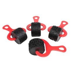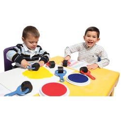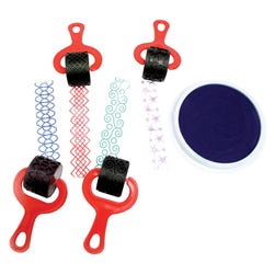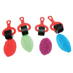 Ready2Learn Paint and Clay Explorer Set contains 1-1/2 in wide heavy duty rollers with 5 in durable plastic, comfort-grip handles for creating unique patterns with paint or clay. Roller contains latex and is easy to clean allowing for child-safe, long term use. Set 0f 4 rollers comes in stars, hoops, swirls and diamond patterns. Sold as 4 per set.Features
