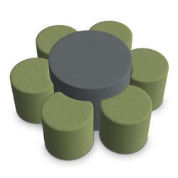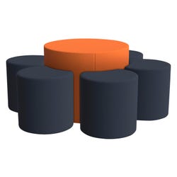 Create collaborative spaces for teachers and students with NeoLounge Sunflower soft seating solution. This fun yet practical seating solution arranges in a sunflower formation when stored to add a playful design to any space. Comes in a set of seven pieces that can be used as a footrest, a seat, or a surface, depending on preference. These high-quality pieces are built for high-traffic areas - as comfortable as they are durable to last as long as you need them.Transform spaces into learning pods with this attractive alternative seating. Available in a variety of fabric and seat colors to best match your space.Features