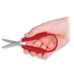 The PETA Mini Easi-Grip Scissors are thoughtfully designed for young children and individuals with small hands or limited dexterity. Compact and lightweight, these adaptive scissors feature a stainless steel blade for smooth, precise cutting and a self-opening spring design that automatically reopens the blades after each cut—perfect for those with reduced grip strength or motor challenges. Their soft-touch, easy-grip handle encourages independence and safe use in school, therapy, or home environments. Search Adapted Scissors for more options. Maroon/Red. Sorry, no color choice.Features