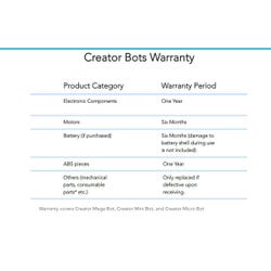 Using any 3D printer, simply click and print accessories for the Creator Bot. This includes a bumper, spoiler, top shell and fins! Learn how to 3D print the STL files on any 3D printer and software. The whole idea around 3D printing is all about customization. Learn how to customize your Creator Bot's accessories to look and feel how you want. This includes color, shape, words and more! Batteries are not included.