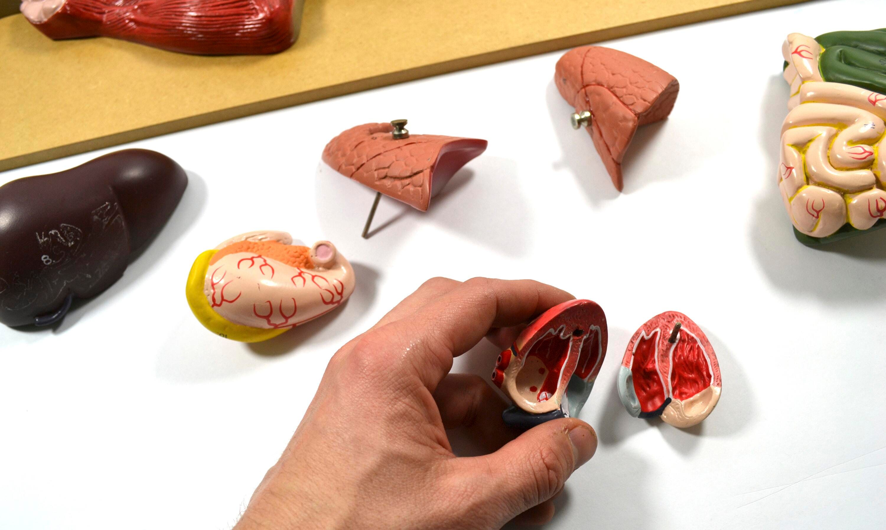 This hand painted model pig dissection is a wonderful tool for classrooms as either a preliminary diagram for students about to dissect their first pig, or for classes with students that prefer to not engage in hands on dissection of organic specimens. Measuring 22" in length, the model weighs 5 lbs and allows for hands on analysis of critical internal organs as well as an idea of how these organs fit together within the body