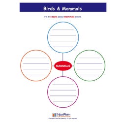 Complete, easy-to-use and engaging, the Birds & Mammals Learning Center is ideal for the instruction and review of this key, standards-based concept. Designed for either teacher-directed instruction or independent use by groups of 2 to 4 students, the Learning Center provides complete, leveled coverage of this curriculum-aligned topic, making it perfect for differentiated instruction. To use, the students first work individually or in pairs using the 4 laminated Visual Learning Guides provided on the topic. The guide provides a graphic, easy-to-follow overview of the concept; “Write-On/Wipe-Off” activities and graphic organizers; and a set of guiding, assessment review questions. They then form in a group to play the Curriculum Mastery Game included for cooperative or competitive review and reinforcement of the concepts. Packaged in a durable pouch, the Learning Center is a ready-to-use resource for the classroom, after school and summer school programs or at home for test preparation, practice and review! Grades 1 - 2.Features