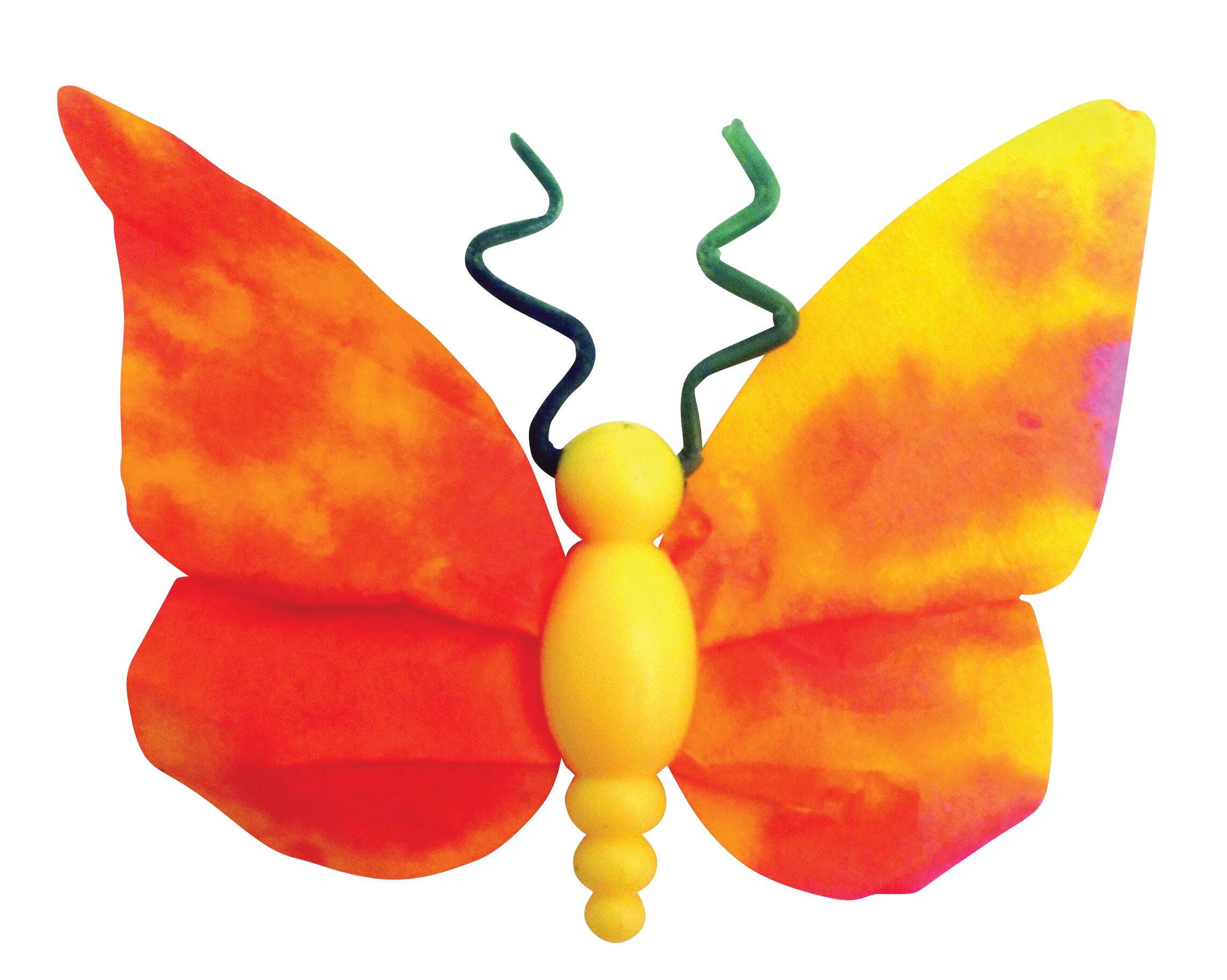 Transform your space into a butterfly conservatory! This complete kit is perfect for butterfly lovers and artists alike. Add color to the pre-cut Color Diffusing Paper™ wings with watercolor paint or washable markers, spray with water, and watch as the colors dance together to create one-of-a-kind patterns. Once dry, fold and thread wings through the slot in the bug's body and watch your creation come to life! Pop on an antenna and attach a chenille stem through the body to make an adorable bug bracelet or hair bow! Let science and art merge to make learning fun and engaging for everyone.Features