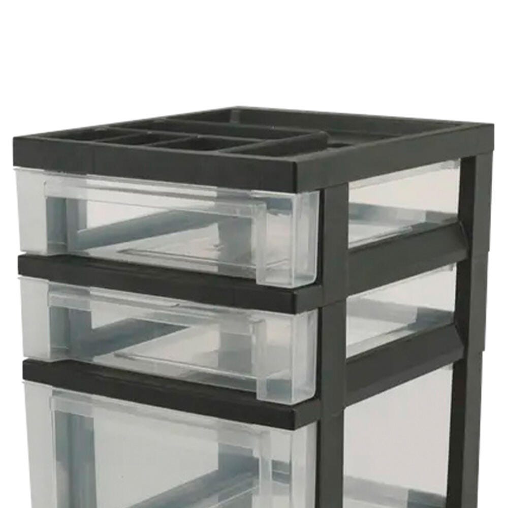 IRiS Mini Chest Storage Cart with 4 Drawers, 12-1/16 x 14-1/4 x 26-7/16 Inches, Clear Plastic, Black