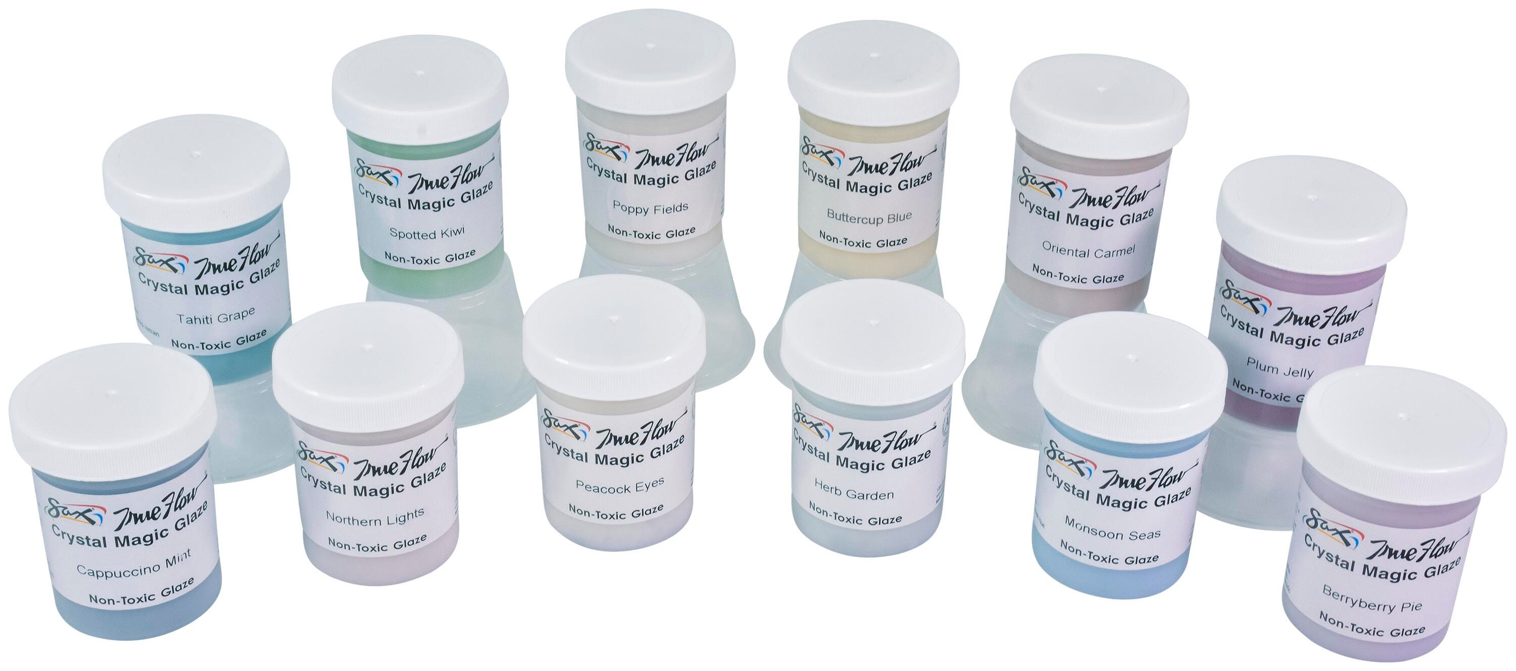 Sax Crystal Magic Glazes, 4 Ounce Jars, Assorted Colors, Set of 12