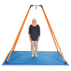 This lightweight Haley’s Joy On the Go Swing Frame and Mat provides both linear and rotational swinging for sensory seekers of all ages. Great for use in clinics, schools, hospitals and homes. It sets up and breaks down in just minutes with no tools necessary and is made of foam-padded, high-strength aluminum uprights 87 inches tall. The swing footprint is 94 x 85 inches, weighs 33 pounds and has a maximum working load of 300 pounds.Features
