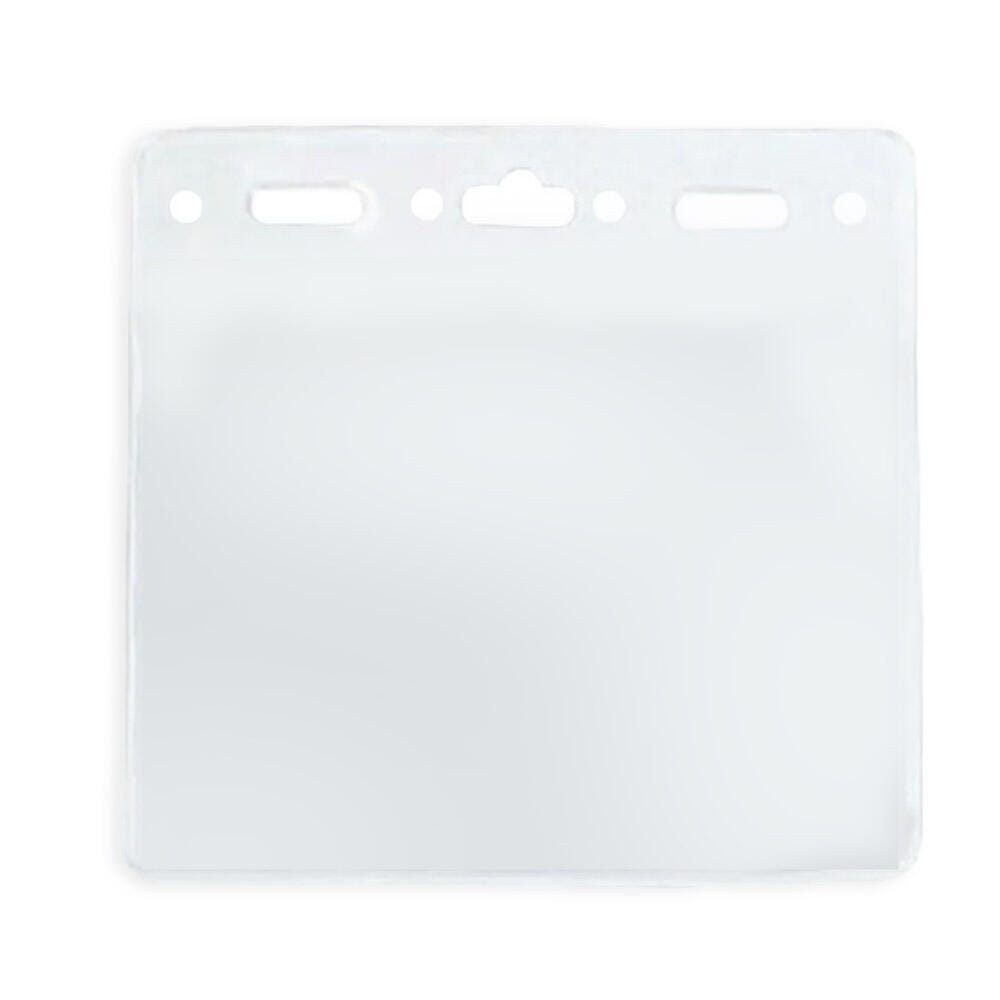 These horizontal clear badge holders create an intuitive security system with identification made simple. Supports a maximum badge size of 4 x 3 inches and is designed for daily use. They feature reinforced headers with a pre-punched slot and holes for ID badge reels, strap clips, lanyards, chains, and barbs. These sturdy vinyl ID holders can also be used as business card holders. Sold as 50 per pack.Features