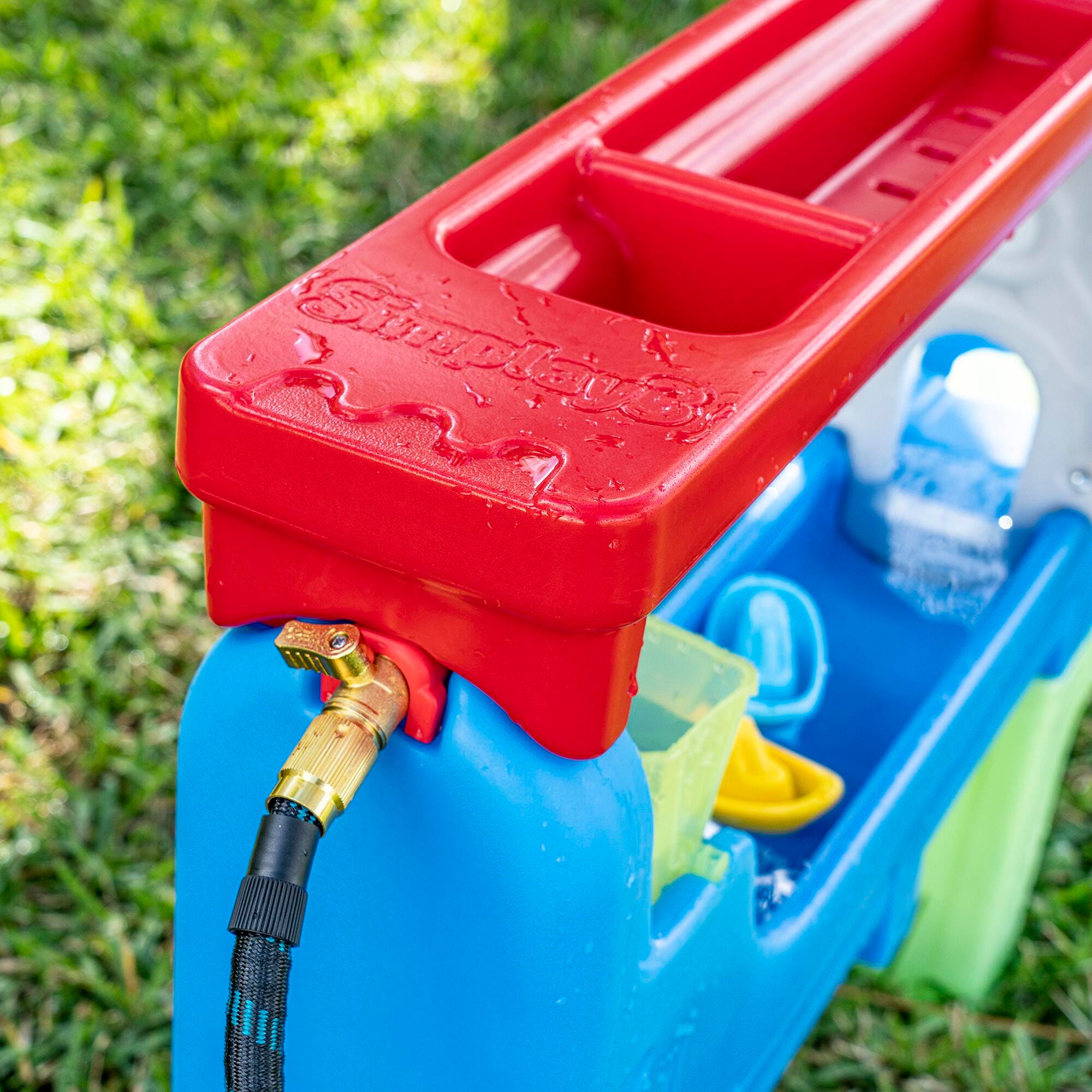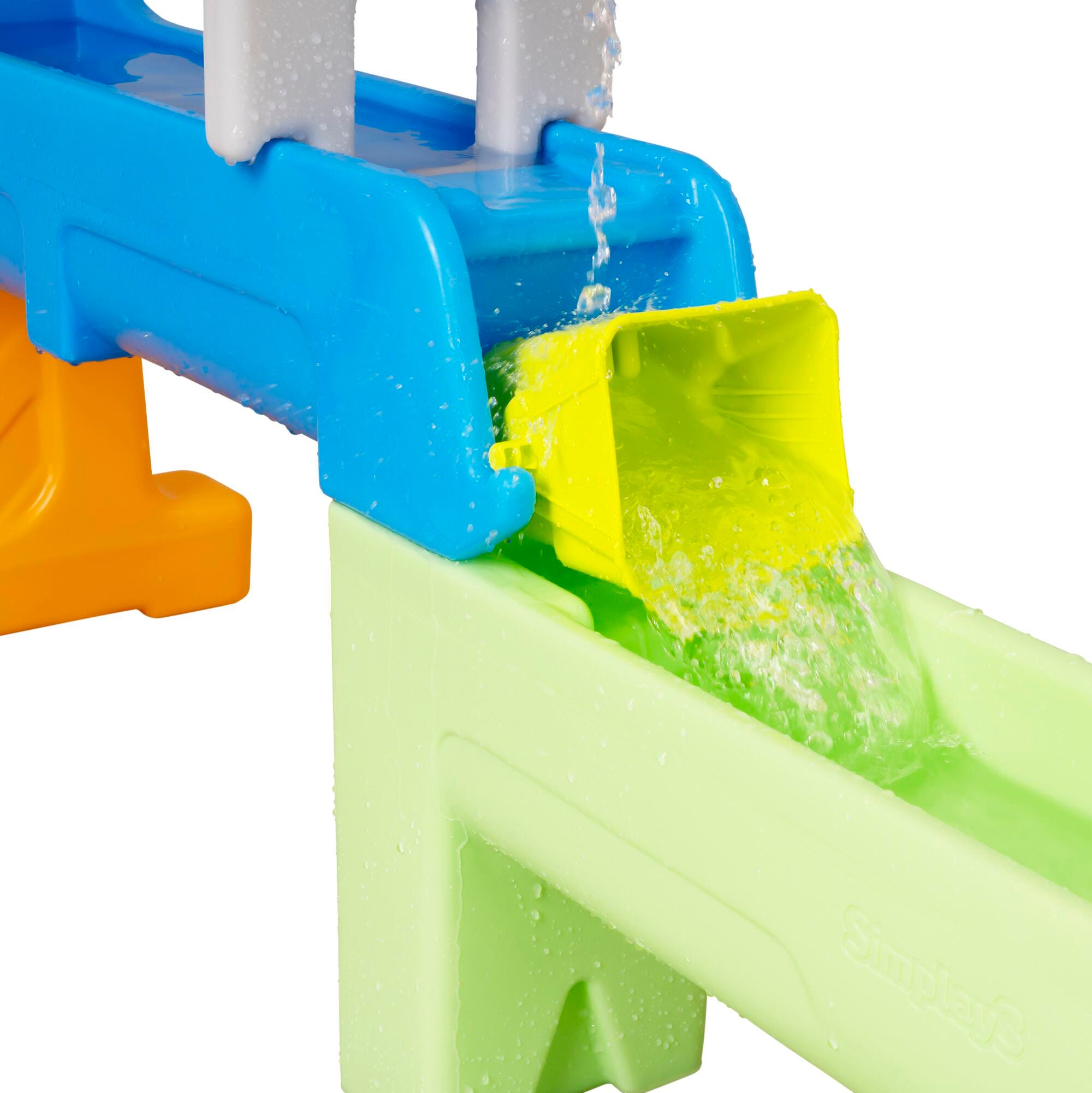 Turn the backyard into a child's outdoor water fun park with the Raindrop Falls Water Table Splash Pool by Simplay3. This multi-level, cascading water play table with a splash pool provides over 8 feet of waterway fun with plenty of room for toddlers and kids to play together. The assembly is easy for parents; Just attach a hose (hose not included) to the water splash center for continuous water flow or fill up once and let kids create their own water stream by scooping and pouring water into the rainfall waterway or the fill and spill buckets. Watch little boats move down the river channels with the tip of a bucket and wade in the toddler pool when it’s time to cool off. Two tipping buckets add to the movement and dynamic play that splashes down all 3 levels, pushing waves and boats down each level in a rush of water.