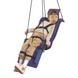 Special Swing is made of high-density polyethylene, a strong but comfortable plastic. Seat comes with a pommel (abductor to keep legs separated), a safety harness with snap buckles and adjustable ropes. Rope lengths adjustable to fit frames up to 10' high (may be used on any swing set). This child-size swing measures, 11 W x 8 D x 24 H inches and has a maximum weight capacity of 75 lbs. Full Swing Set includes headrest, swing, ropes and leg support.Features