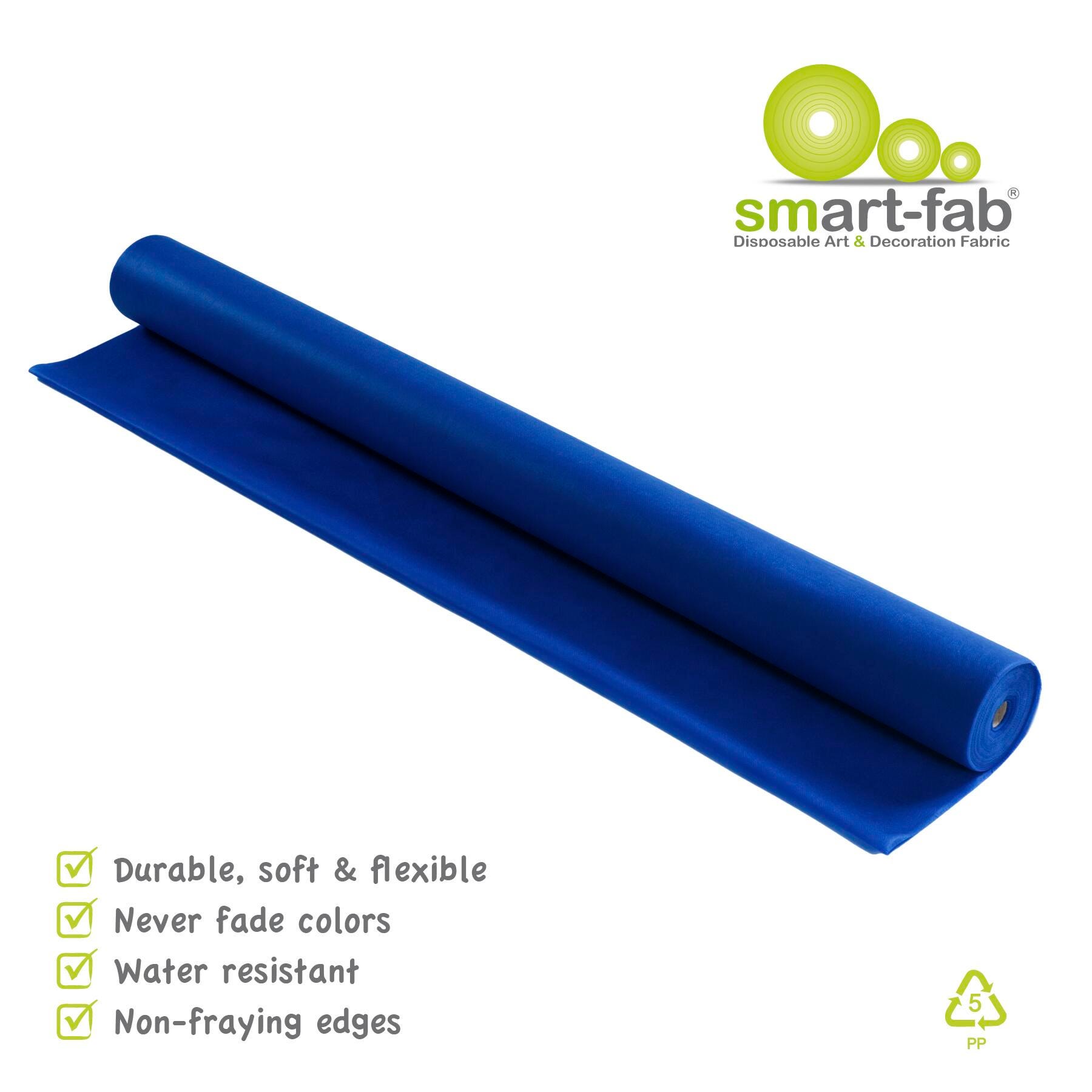 Smart-Fab Non-Woven Fabric Roll measuring 48 in x 120 ft in dark blue is an innovative artistic and educational medium. It's bold, brilliant colors are in the material itself, so they won't fade and look great from either side. Soft and pliable yet strong and durable, smart-fab won't rip, fray or wear out, yet it's easy to cut, fold, twist, crimp, ruffle and glue. The cloth-like texture makes it pleasant to handle, yet firm enough to be used in 3-D creations and it is great for outdoor use. It is water and wear resistant but can be easily colored with paints, crayons, markers and all popular art media. Roll is also convenient to store, supplied in rolls that fit standard paper roll racks.Features