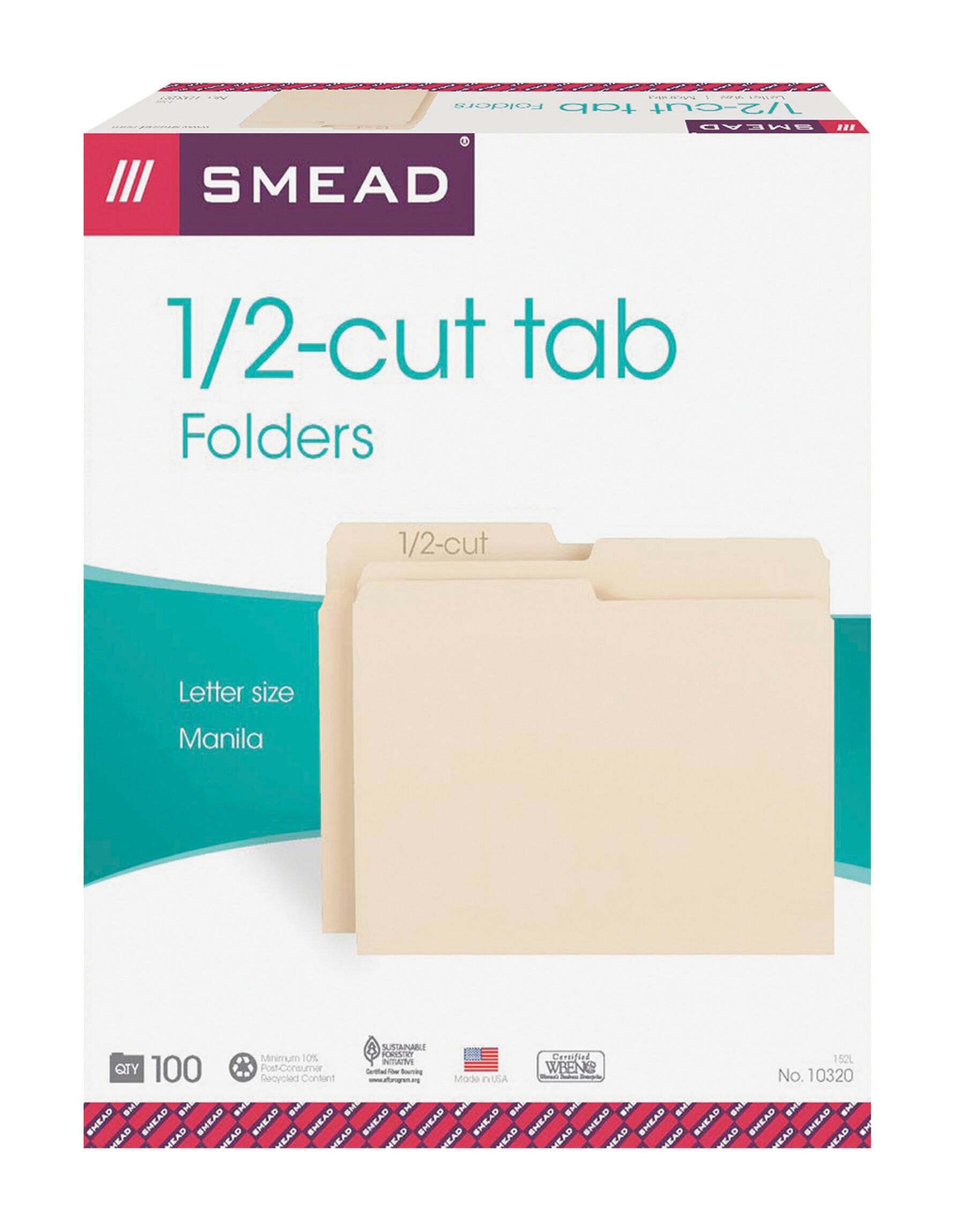 Smead File Folder, Letter Size, 1/2 Assorted Cut, Manila, Pack of 100