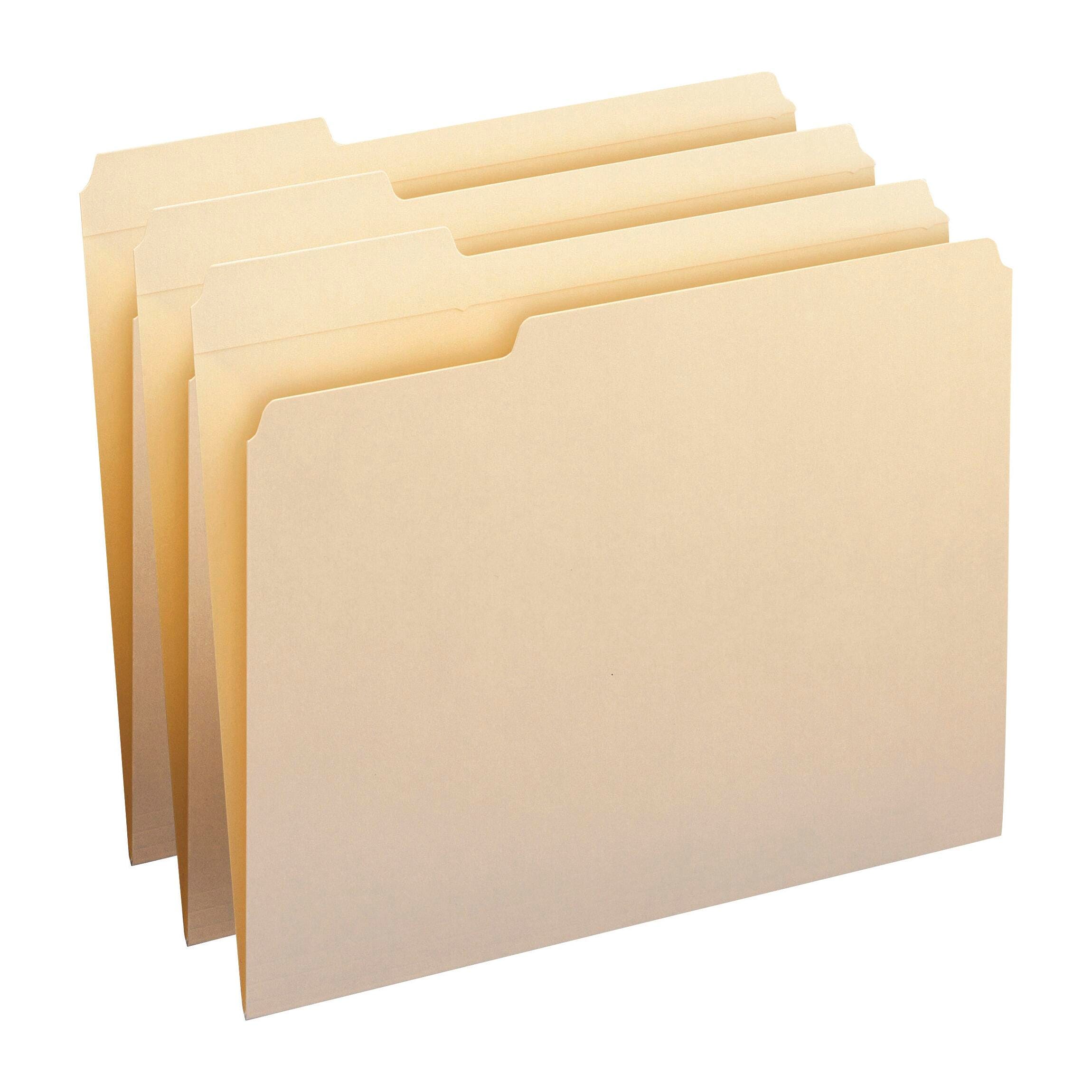 More durable than standard file folders, these file folders feature full-width tabs reinforced to provide the extra strength where you need it most. Ideal for organizing files or archives. Sturdy, 11 point construction of the file folders protects documents. Corners are rounded in front and back. Scored for 3/4 inch expansion.