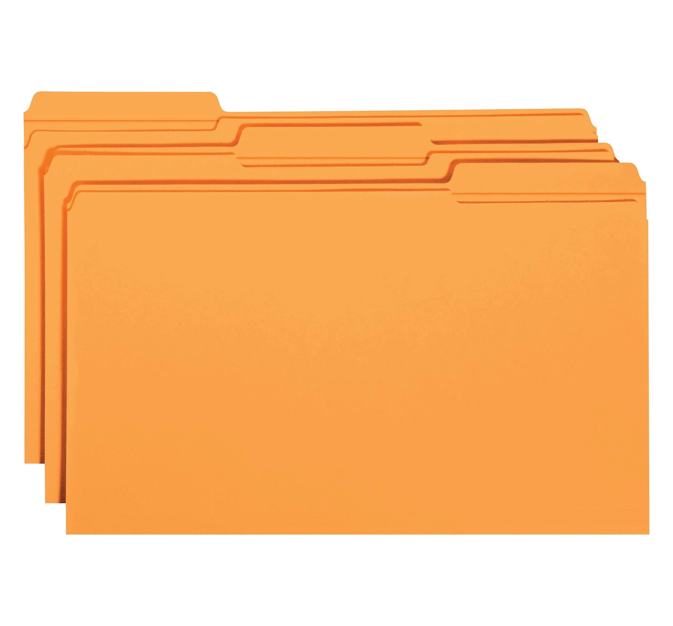 Smead Reinforced File Folders, Legal Size, 1/3 Cut Tabs, Orange, Pack of 100