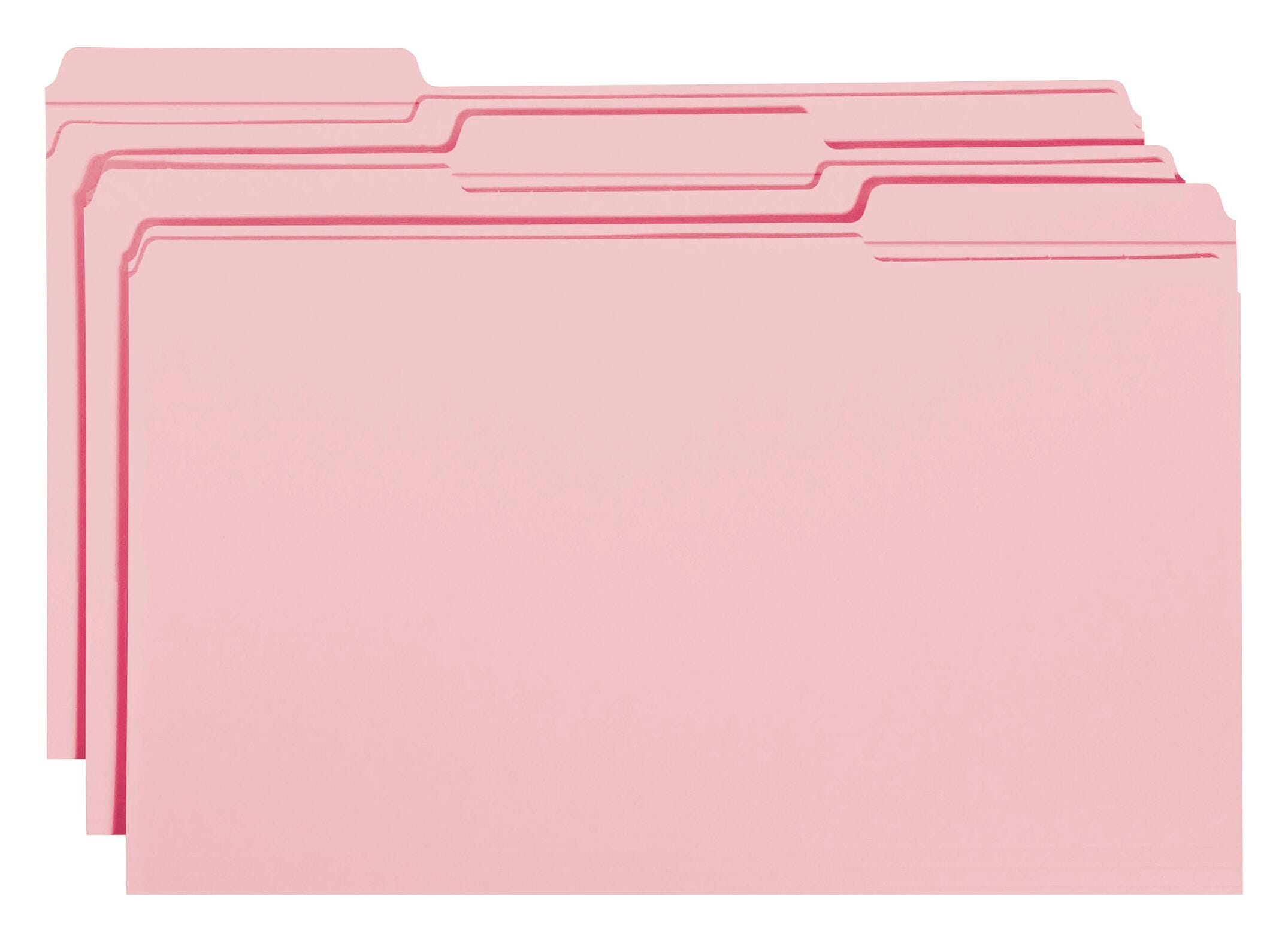 Smead Reinforced File Folders, Legal Size, 1/3 Cut Tabs, Pink, Pack of 100