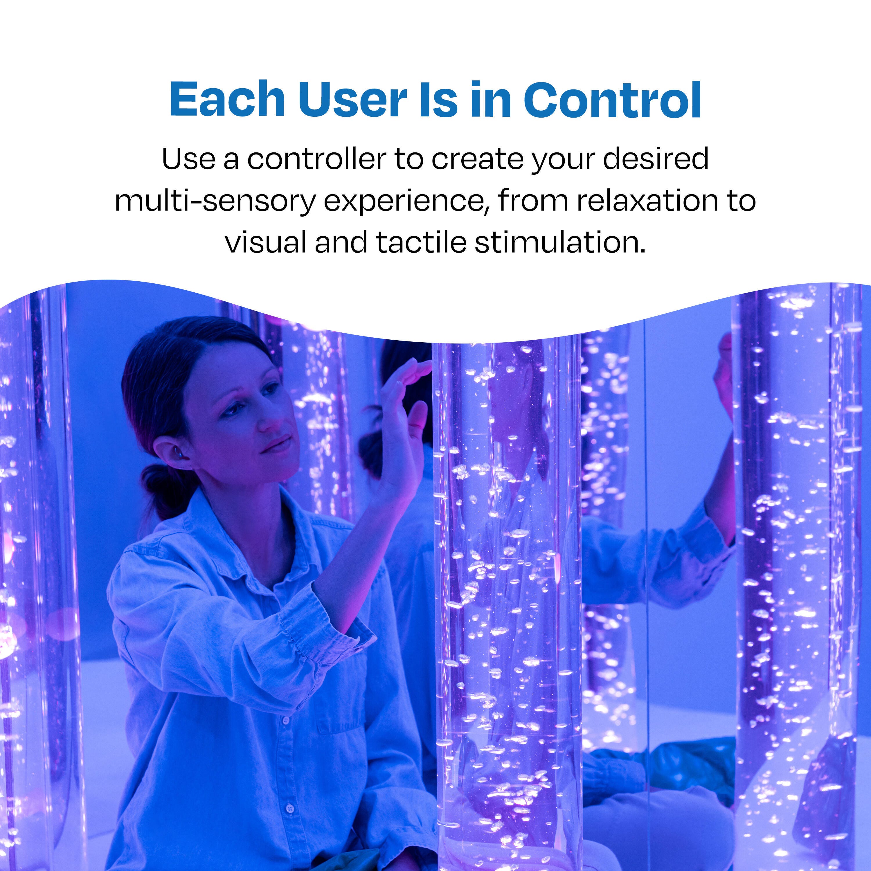 Compatible with additional Snoezelen WiFi items and Sensory Magic for customization; bubble tube bases, bubble tube safety collars, and mirrors are recommended; a variety of controllers are available (all sold separately)