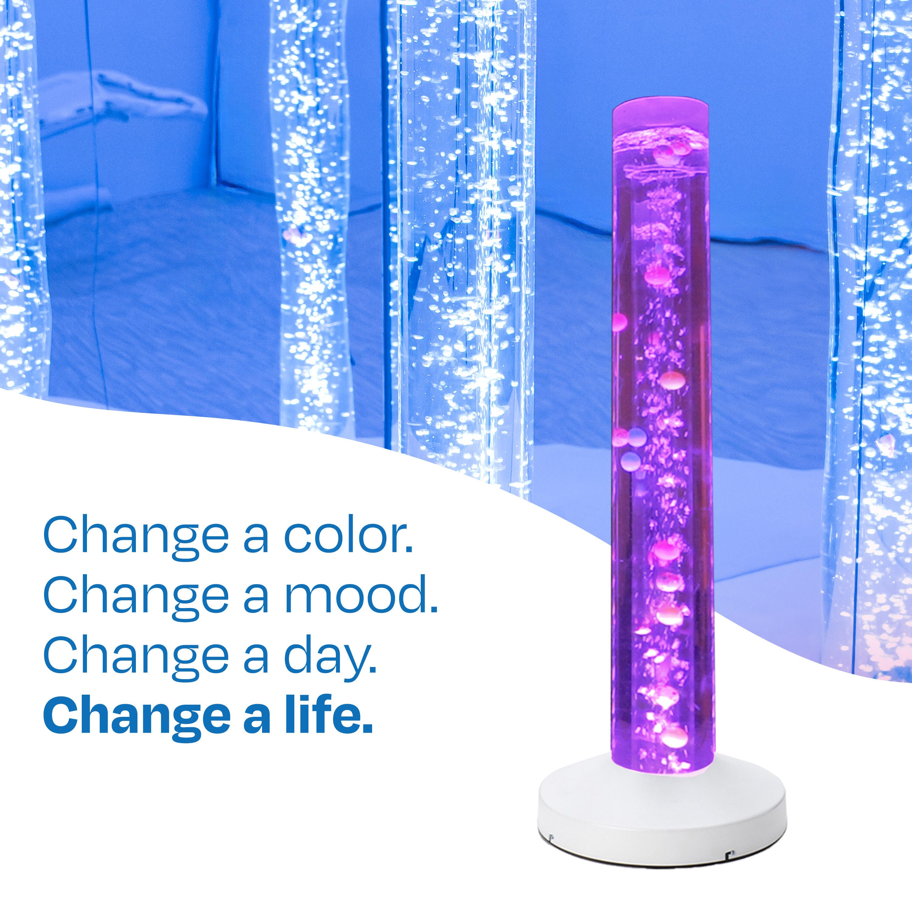 Snoezelen bubble tubes bring movement, light, and color to any space to attract attention, concentration, and engagement