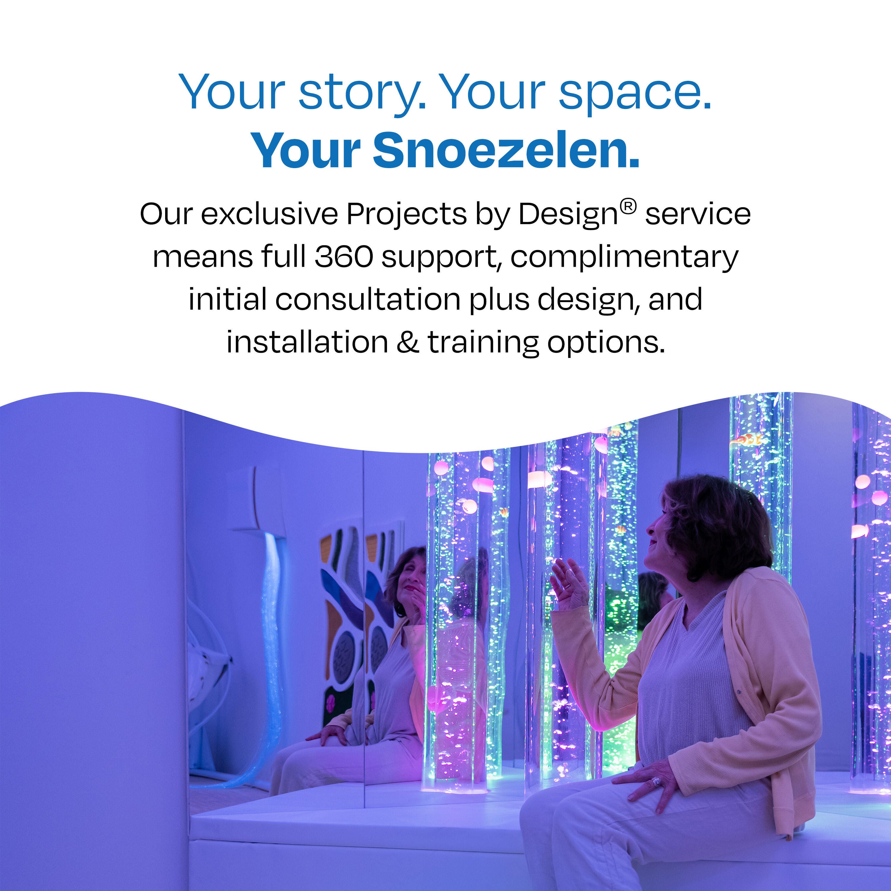 From calming relaxation to energizing stimulation, we’ve got you covered with Snoezelen multi-sensory products; full consultation, design, training, and installation services available