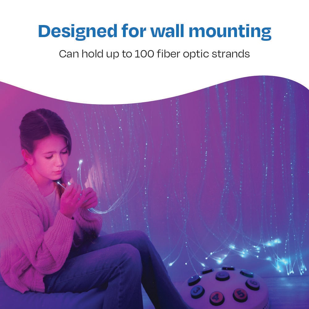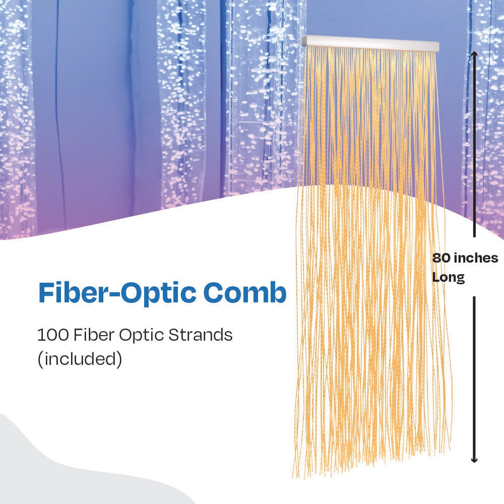 Enhance your sensory space, starting with this Snoezelen Fiber-Optic Comb. This Comb is designed to be wall-mounted, and can be used as a partition to separate different areas within your sensory space, care space, or playroom. Perfect for allowing those who need a moment of relief a separate space from those who need active engagement. Use this innovative device with your fiber-optic sprays to create spectacular, cascading waterfall effects! Includes 100 fiber optic strands, 80 L inches, but can be installed with fewer depending on the effect you prefer.