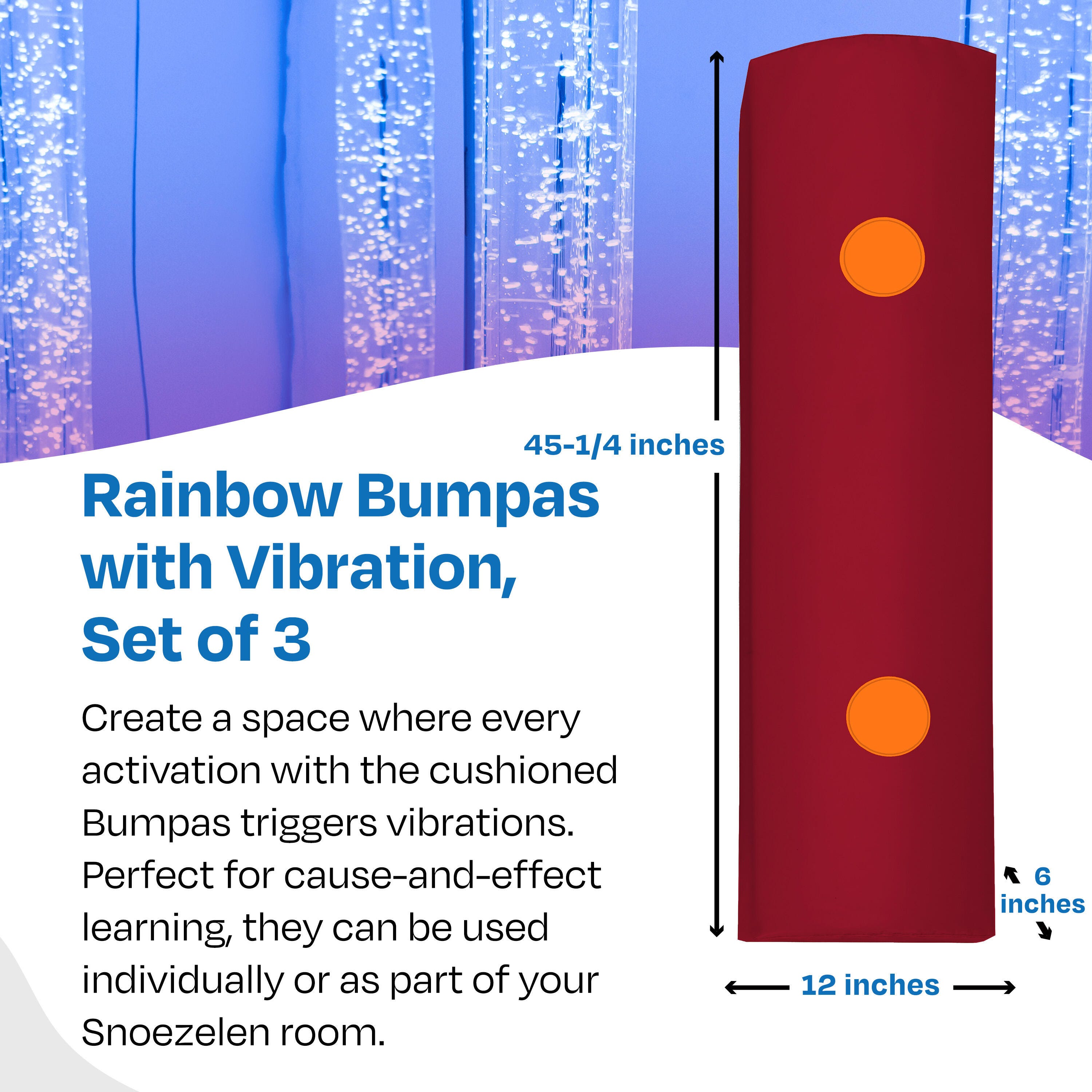 Each Snoezelen Bumpa measures 45-1/4 W x 12 D x 6 H inches