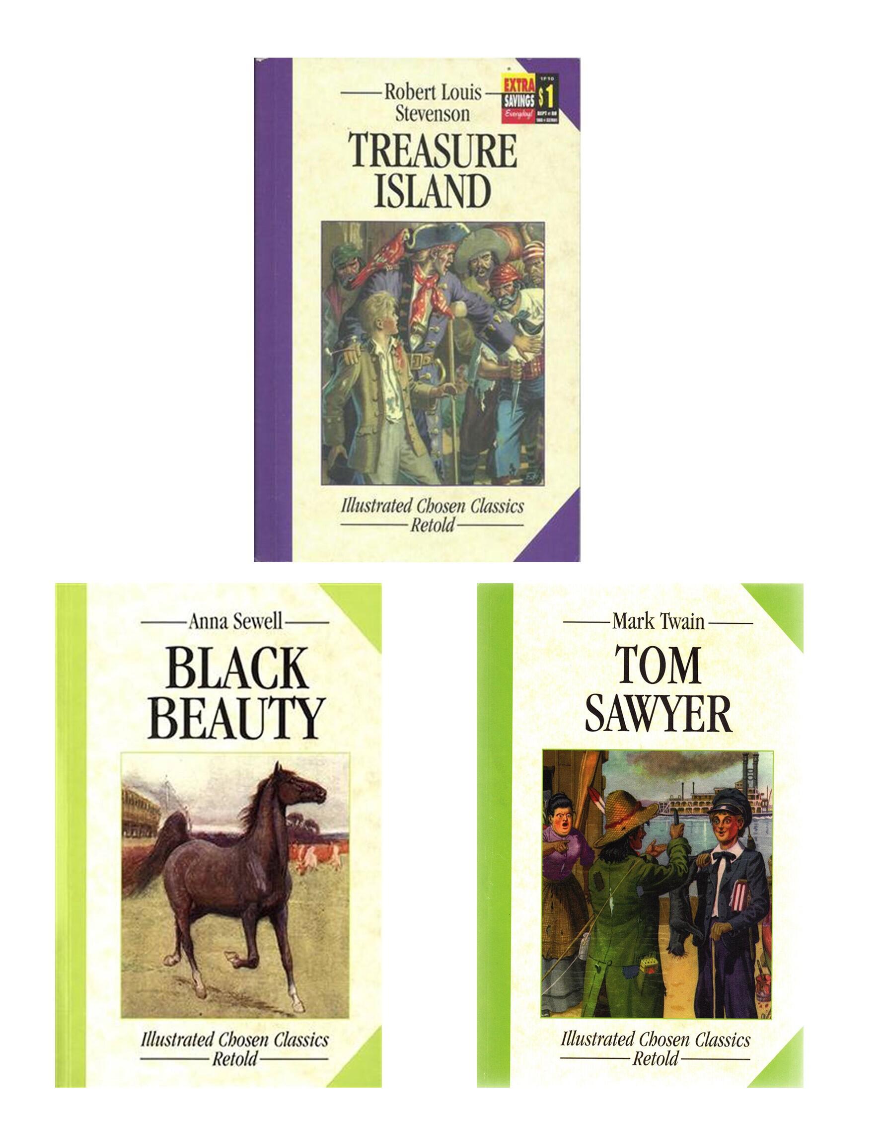 Recieve either Tom Sawyer, Treasure Island, or Black Beauty all retold for a younger elementary audience.Features