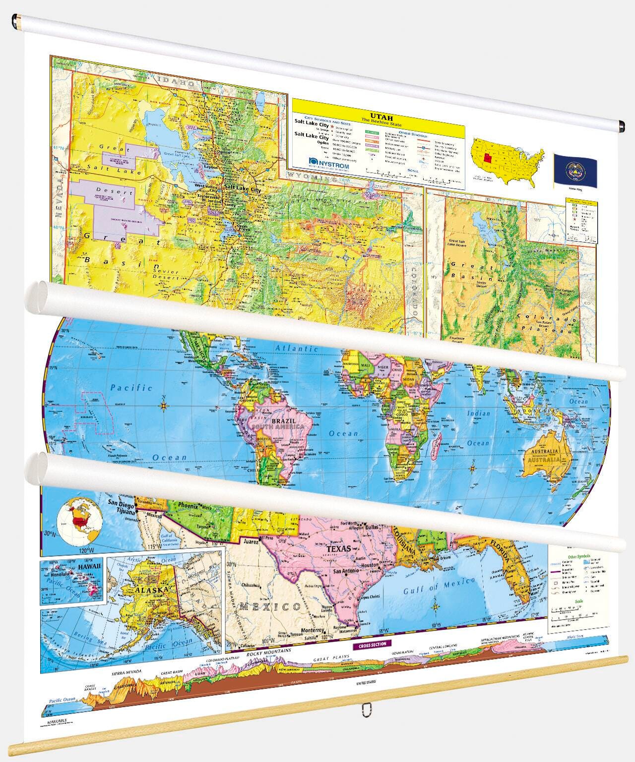 Social Studies UTAH/U.S./WORLD MAP COMBO, Markable, Erasable, Grades 4-12