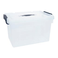 The SpaceXpert organizer storages bins come equipped with side clasps to secure top cover lids. Comfortable innovative latches for easy handling. The see through base allows for easy identification of all your office or school stuff. Designed for heavy duty and able to withstand weight. These storage bins are also modular stackable for maximum efficiency. The outside dimensions of the bin are 16.4"Lx11.6"Wx9.8"H and the inside dimensions measure at 14.4"Lx10.1"Wx8.9"H.