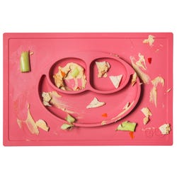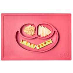 The Happy Mat is ezpz's award-winning flagship product. It is an all-in-one placemat + plate designed for toddlers and preschoolers that suctions to the table, which means that it captures the mess and reduces tipped bowls and plates. Happy Mat features a smile design that encourages a positive mealtime experience, plus includes three compartments to remind parents to serve a well-balanced meal. Compartment sizes are 4 oz, 4 oz and 10 oz. Happy Mat is made with 100 percent silicone (BPA, BPS, PVS, phthalate, and latex-free) and is dishwasher, microwave and oven safe (up to 350 degrees). Entire mat measures 15 L x 10 W x 1 H inches. Appropriate for ages 18 months and up.Features