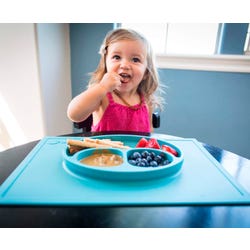 - Stable silicone placemat base promotes self-feeding and develops fine motor skills