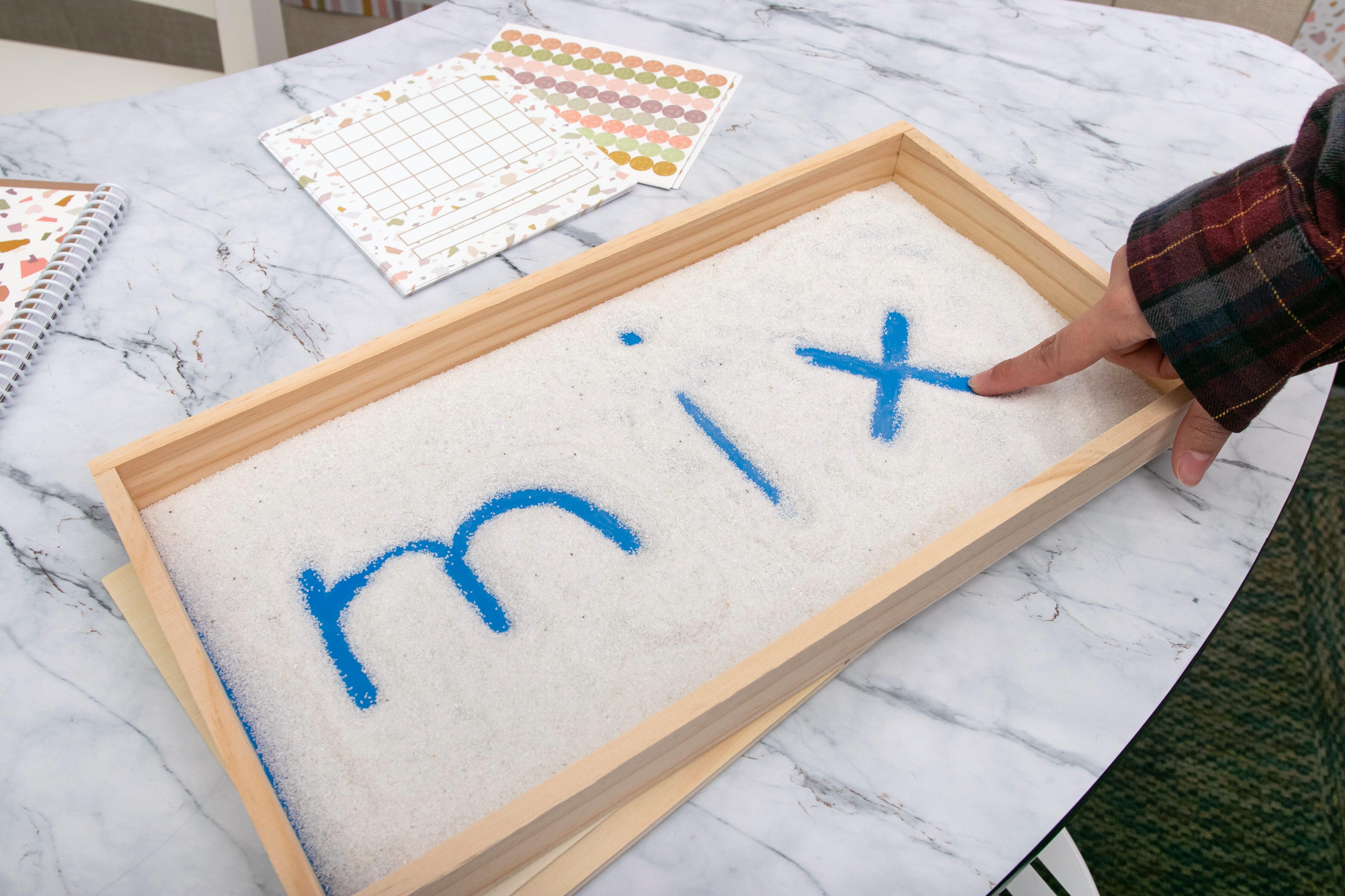 • Traceable letter sand tray allows for hands-on literacy and spelling lessons or free-form word and tracing play