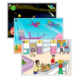 This one-of-a-kind, magnetic masterpiece targets a ton of language and listening skills. The barrier game format is perfect for following directions, deductive reasoning, giving directions, vocabulary, auditory memory, storytelling, basic concepts, categorization, rhyming, and listening. Your students will have a blast going camping, swimming through the ocean, and traveling to outer space while learning to listen and use language effectively. The kit includes a reproducible workbook to make homework and group activities a breeze.Features