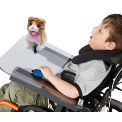 - Can be mounted on smooth, hard surfaces such as mobility aids, assistive arms, desks, tables, and walls