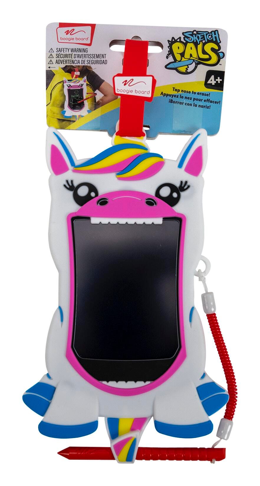 Let your child's imagination shine with the Boogie Board Sketch Pals Unicorn! This adorable, portable doodle board is perfect for creative play anytime, anywhere. With a vibrant unicorn design and a kid-friendly clip-on feature, it's easy to attach to backpacks, lunchboxes, or travel bags—making it a great companion for car rides, school days, and family adventures. The mess-free LCD writing screen lets kids draw, doodle, and write with just the touch of a stylus (or even their finger). When they're ready to start over, a single button clears the screen instantly. No paper, no mess, no charging required!Features