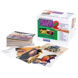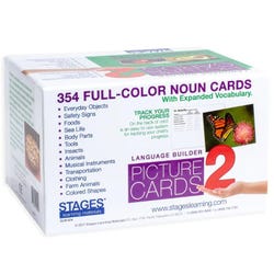 A fun, colorful, interactive way to practice labeling, sorting, grammar, matching, storytelling and more! Categories include body parts, safety signs, tools, musical instruments, animals, clothing, transportation, foods, and everyday objects. Includes 354 photographic cards, each measuring 3-1/2 x 5 inches.