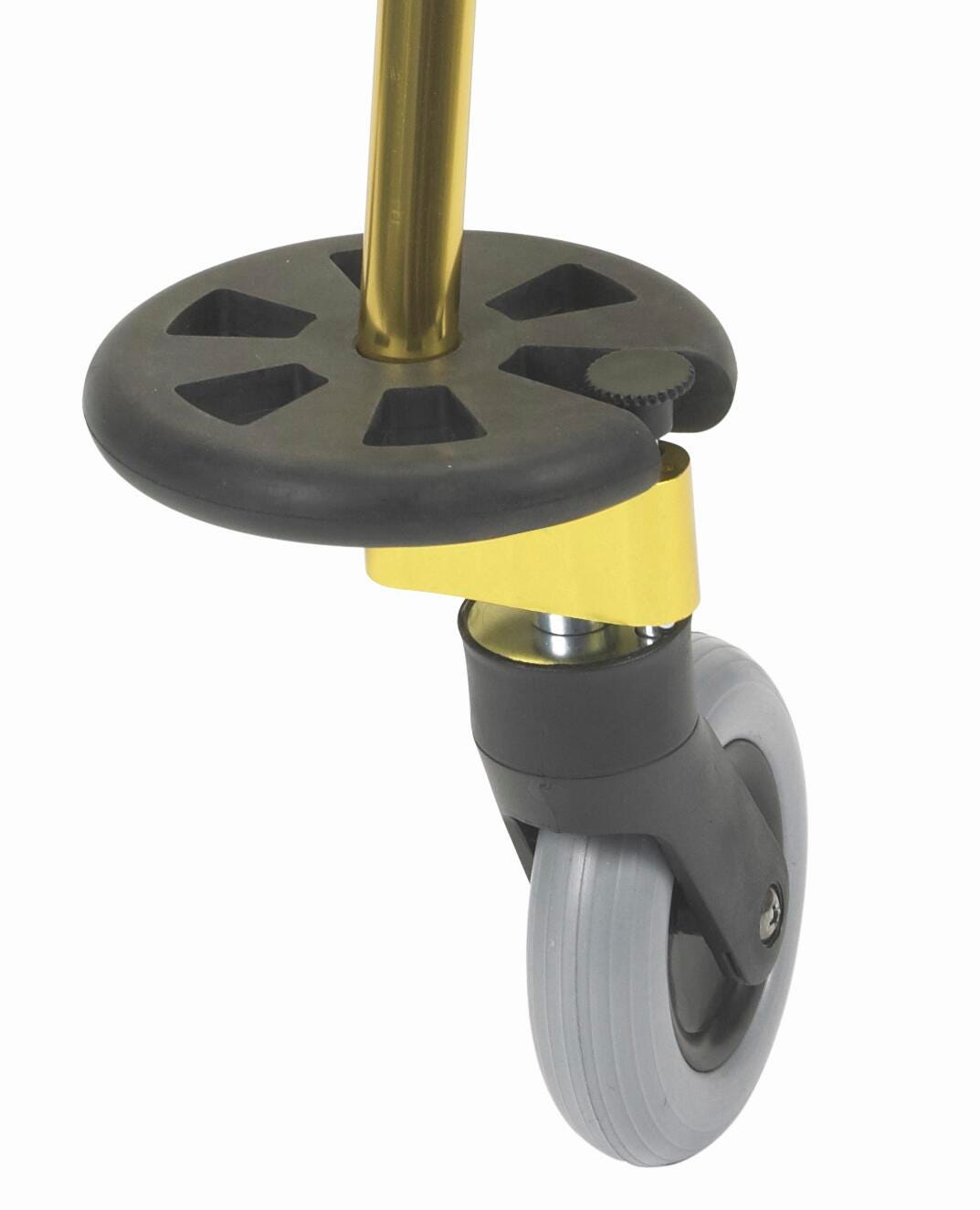 These universal bumper guards fit over the front wheel casters and protect your walls. The circumference of the bumper guard is 6 inches and the circumference of the inner cutout is approximately 7/8 inch. The thickness is 3/4 inch. These bumper guards are adaptable to most walker legs.