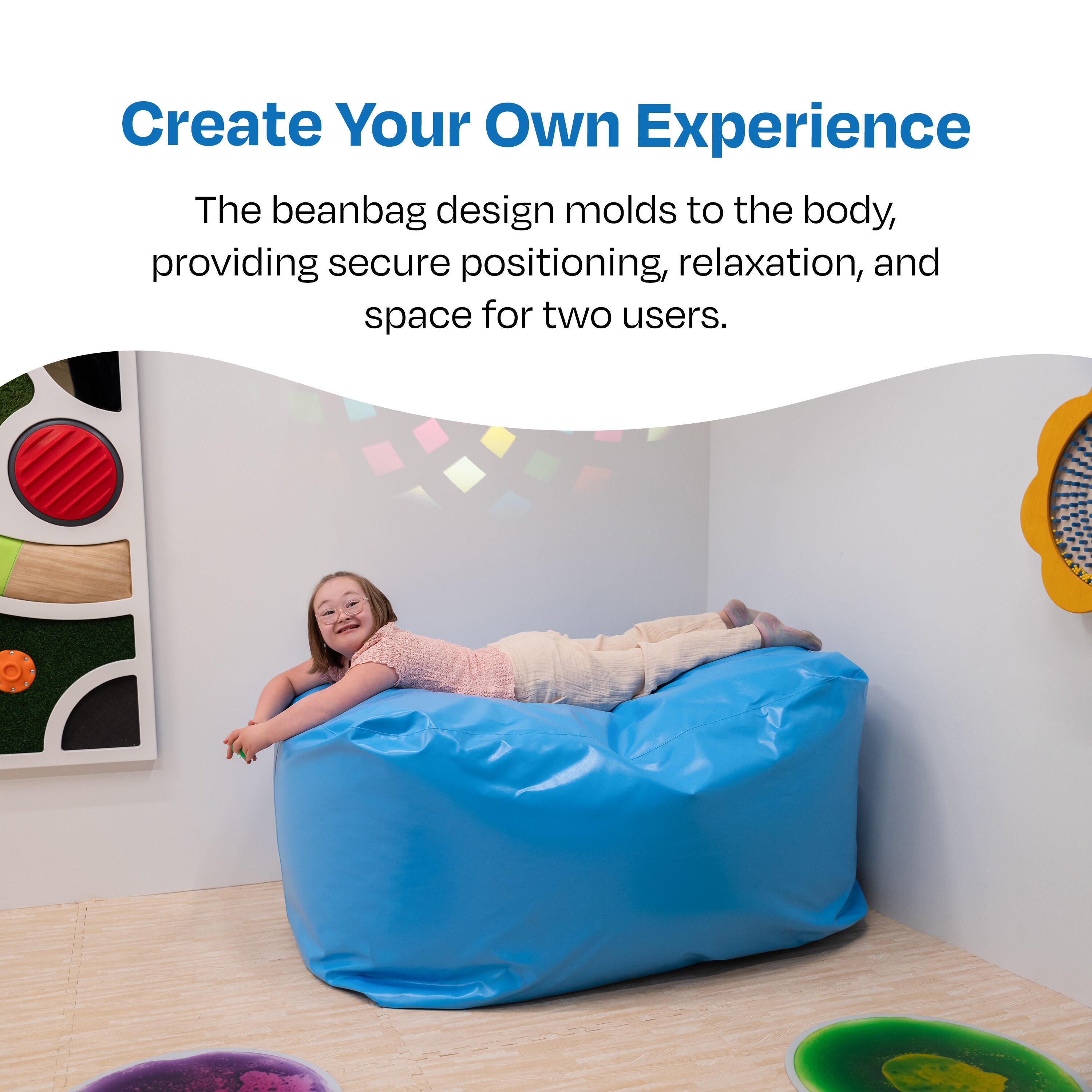 Snoezelen® Musical Positioning Cushion offers a soothing multi-sensory experience, ideal for any Snoezelen room, classroom, or healthcare facility. Pair the cushioned seat with our music system item #2120338 (sold separately) to experience the full effect. The music and vibrations can be both heard and felt, creating a calming environment. A beanbag-style design molds to the user's body, offering secure positioning and promoting relaxation and self-soothing. Spacious enough to accommodate two users, this comfortable beanbag seat provides versatile support for children and adults alike.