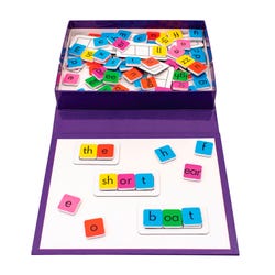This collection of phonics tiles includes all of the most common letter patterns, including consonants, short vowels, consonant digraphs, vowel digraphs and split digraph (each color-coded accordingly). Comes with a self contained storage box and pop up whiteboard. Also includes phoneme frames of different sizes for building different words. Compatible with supporting resources such as blend objects, vowel objects and magic e objects. Everything you need to model and practice spelling new words.Features