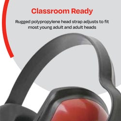 Califone Bright Red Better Hearing Protector is featured with adjustable earcups, full size dielectric, comfortable headband, and easy clean APS plastic. ABS plastic ear cups hold up to continued usage in high-use settings. It is designed to be worn while in industrial arts areas, factories or other loud areas. Hearing protector is designed to block out potentially damaging external noises by completely covering the outer ear. Protector comes with rugged polypropylene head strap and adjustable headband. The ear cup shape is planned to completely cover the ears of young adults and adults for maximum protection.Features