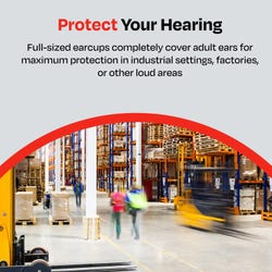 Protect your ears from loud noises with earcups designed to cover your entire ear. Perfect for loud spaces like manufacturing settings, factories, auto shops, and beyond.