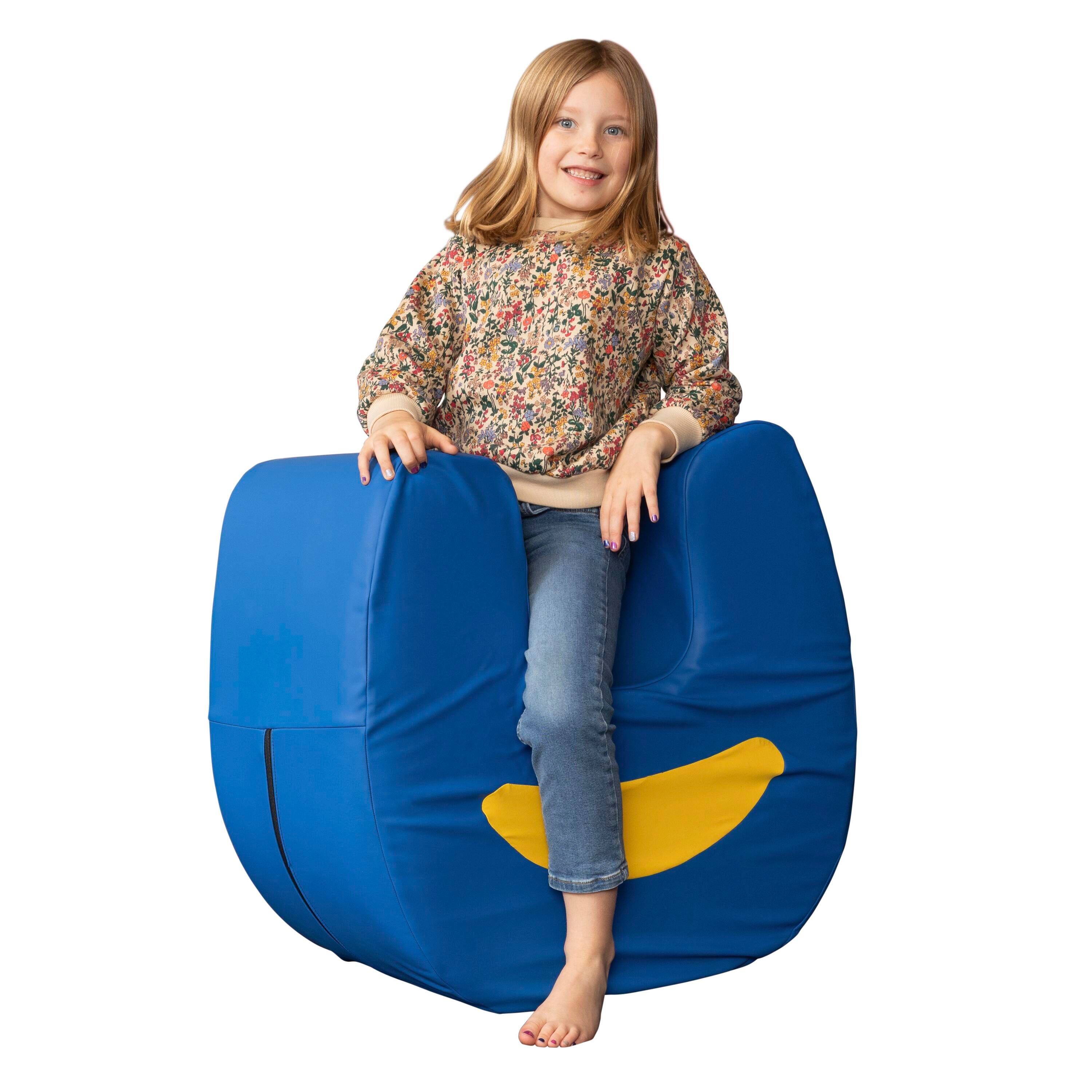 The playful shape of the SqUoosh Chair is designed specifically to squeeze into the child when sitting on it, providing a gentle, calming proprioceptive "hug" to help their systems organize. The bottom of the sqUoosh has a small flat section for some stability, but can easily be rocked to add a vestibular element. Straddle it and pretend it's a horse, lay prone across it to read a book, or climb on or under it! There are so many ways to use it. Measures 27-1/2 H x 29 L x 13 W inches.Features
