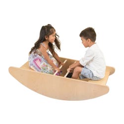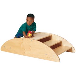 Childcraft® Wood Rocking Chair Boat and Steps is a versatile early childhood play piece that serves as both a rocking boat and a set of climbing steps. When placed curved side down, it becomes a fun and engaging rocking boat, perfect for two children to enjoy together. Flip it over, and it transforms into a short climbing set with a sturdy middle base for added support. This dual-purpose design encourages gross motor development, balance, and imaginative play. Built with durable hardwood construction and smooth, rounded edges, the rocker ensures safe and long-lasting use in early childhood classrooms, playrooms, and childcare centers. Assembly required. Measures 46-1/8 W x 24 D x 11-1/2 H inches. Recommended for ages 2 to 6 years old.Features