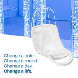 Snoezelen® Leaf Chair offers a calming space for children and adults alike, making it an ideal addition to multi-sensory environments (MSEs). Its gentle swinging motion supports relaxation and sensory integration, providing a secure and comforting retreat. Made from strong, breathable, and washable vinyl, this soothing chair is easy to clean and is built for durability in high-traffic spaces. Whether suspended from a ceiling mount or paired with an optional stand (items #2120455 or #2120564, sold separately), the hanging seat delivers flexibility and ease of use. Weight capacity: up to 220 pounds.Features