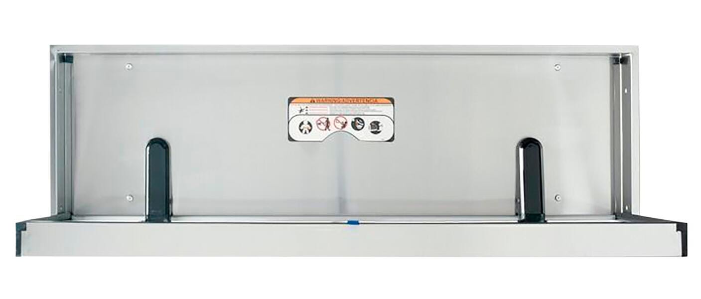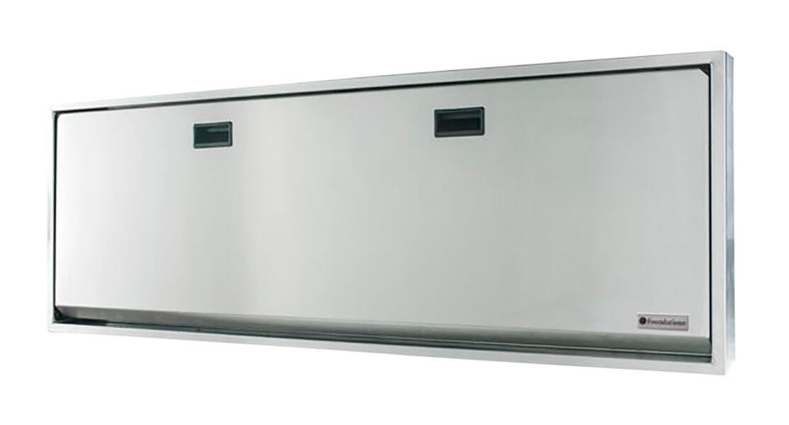 This Diverse Needs Changing Station is designed for adults and the physically challenged with a convenient extended length of over 62 inches. Ideal for use in schools, nursing homes, and hospitals. Constructed from heavy-duty type 304 brushed stainless steel and is rated to support a static load of 400 pounds (181 kilograms). Dual pneumatic gas springs provide easy and safe open/close operation. When closed, unit projects 1 inch (25 millimeters) from wall if recessed or 4 inches (100 millimeters) if surface mounted. Tray protrudes 21-2/3 inches from wall when open. ADA and ANSI compliant when properly installed and features cushioned safety corners and 1-hand operation safety strap. Includes 5-year warranty.Features