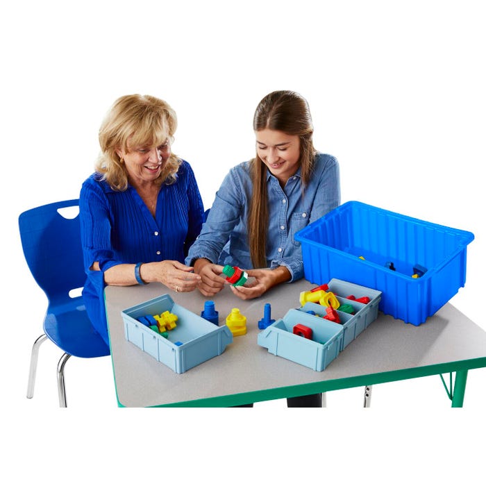 This Abilitations Hardware Assembly Kit is a basic pre-vocational tool to help those practice and perfect following instructions, assemble and dissemble. Match the nuts and bolts by color or shape and learn to fit the pieces together. Organize hardware by size, shape and color. Work on visual perception and fine motor skills by picking, sorting and putting together. Kit comes with storage bin measuring 16-1/2 x 10-7/8 x 6 inches with cover for easy storage, 3 divider bins, 64 plastic nuts and bolts.Features