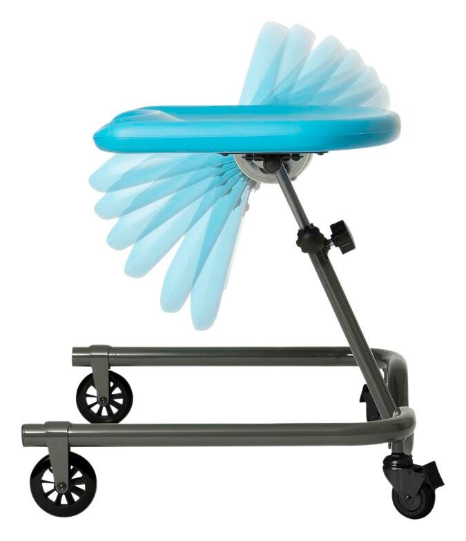 The Special Tomato Mobile Activity Tray (MAT) provides adjustability, maneuverability and versatility for many situations. Includes two 3-inch front swivel locking casters and two 4-inch fixed rear casters to allow for easy access and keeps the tray secure. 28-inch-wide base opening gives many wheelchair or walker users access to the Mobile Activity Table. Designed to integrate with the Soft-Touch Sitters for a variety of activities.